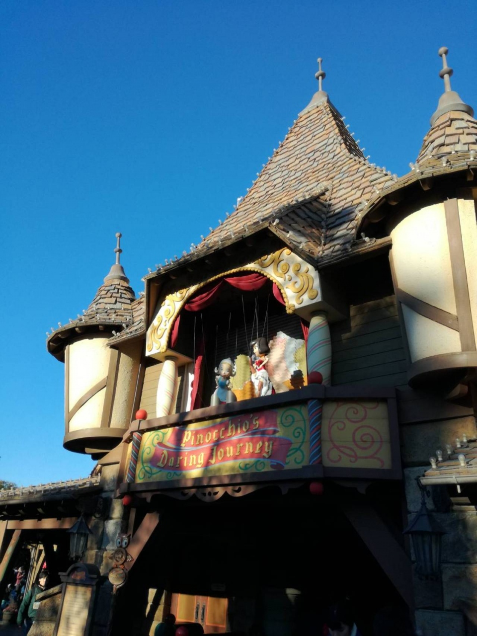 ファンタジーランドにあるアトラクションのひとつです。他のアトラクションと比べて空いていたので乗りました。トロッコに乗って、映画「ピノキオ」の物語を見ていきます。全体的に雰囲気が暗く、あまり面白くはなかったです。