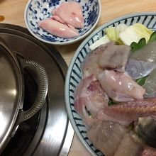 コース内容はてっちり、てっさ、ふぐ皮の酢の物、ふぐ焼き、締めの雑炊など。