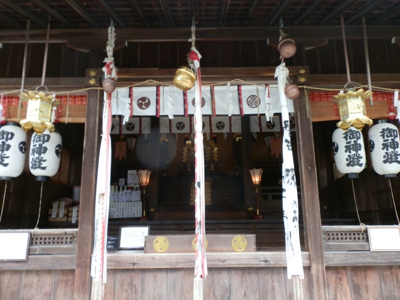 近江八幡の市民にとって身近な神社が日牟禮八幡宮である。訪れたのは10月末の土曜日、八幡宮の神門・拝殿には「七五三詣」「祝 七五三詣り」の看板・旗が飾り付けてあった。神門前の広い通りには七五三で宮参りする人々が次々に駐車し、満車近くになった。神門前の、焼き鯖寿司、丹後ばらずし等の京の加悦寿司が客引きを行い、賑やかになってきた。