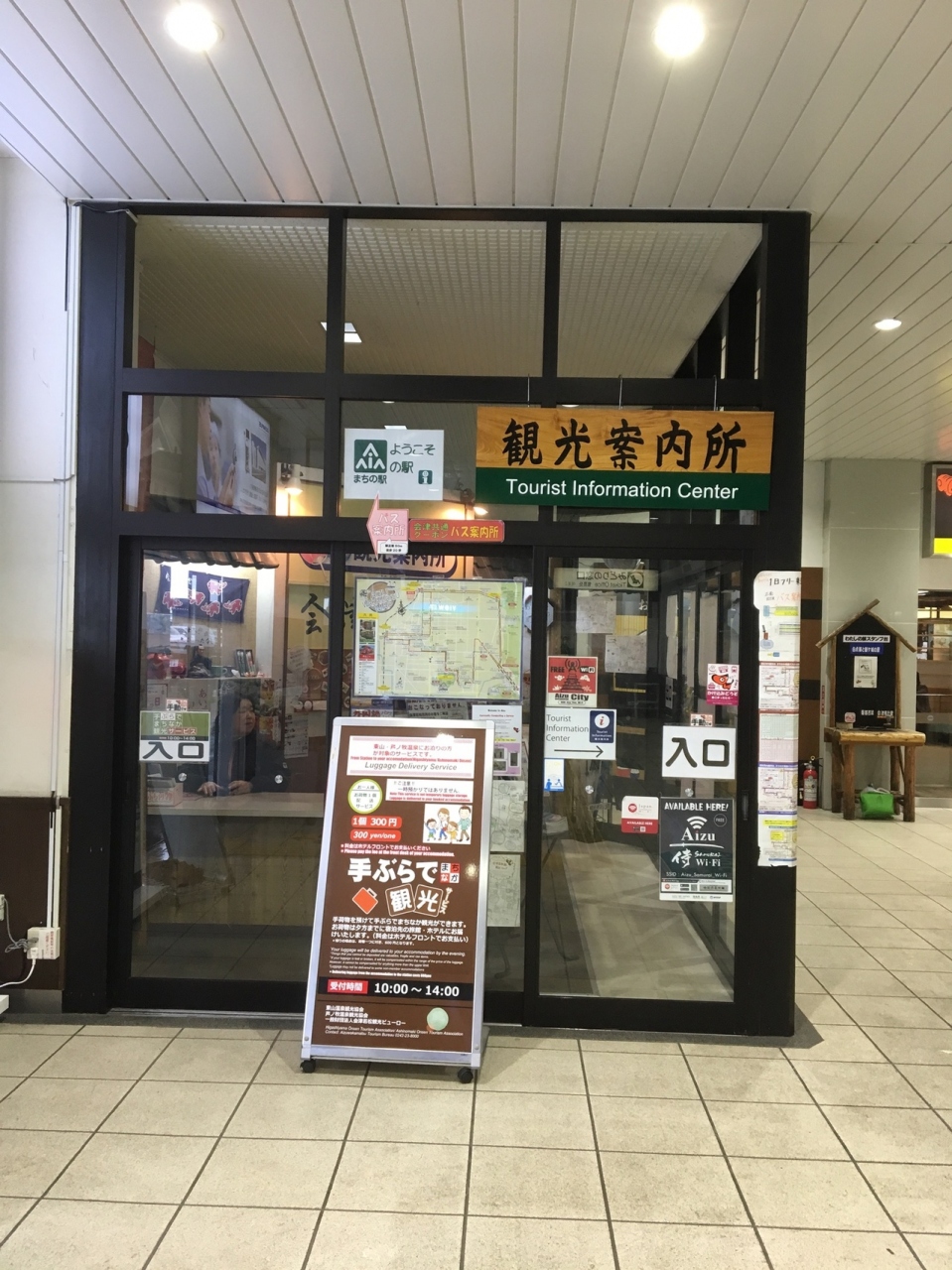 会津若松駅の改札口を出て、すぐ右手のわかりやすいところにありました。それほど大きな観光案内所ではなく、結構混んでいました。観光パンフレット類も豊富でした。七日町周辺の散策の観光などの情報が得られました。