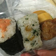 色んな種類のおにぎりが並んでいて、どれも美味しそうでした。からあげと玉子焼きが入ったプチお弁当が売っていて、玉子焼きが食べたかったのでそれを購入しました。