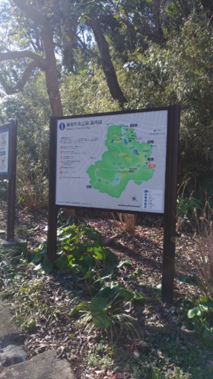 モノレール富士見町駅から住宅街を抜けて細い谷戸を奥に進むと公園の入り口がありました。なかなかわかりにくいです。公園は2つの谷戸とその間の尾根からなっていました。源氏山方面へ抜けるため、左手の谷戸へ進むと広い芝生の公園があります。野外活動でしょうか、野外炊爨を行っていました。尾根の上にある疎林の広場に上がると、人も少なく、明るい広場となっており、ランチ休憩にちょうどよい感じでした。園内は遊具などの人工物が少なく、自然散策を楽しむことができました。