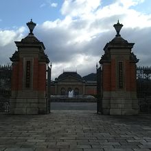 今回は時間に余裕がなかったので外から、眺めて写真を取りました。明治古都館は現在改修の為、内部には入れないそうです。表門、札売場及び袖塀とともに重要文化財に指定せれています。正門は団体専用入口らしく、警備員が立っていて、近づけませんでした。