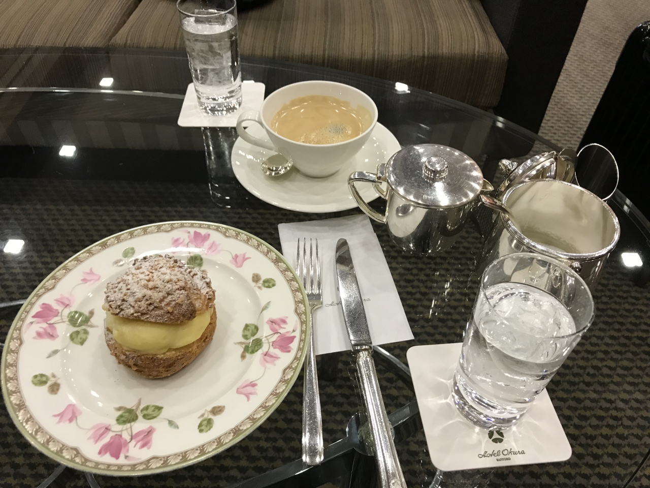 ホテルオークラ札幌の一階にあるティーラウンジです。ケーキセットをいただきました。ケーキセットのケーキは、ホテルオリジナルのケーキの中から選べます。藻岩山と名付けられたシュークリームをいただきました。クリームの味が懐かしい味で、美味しかったです。