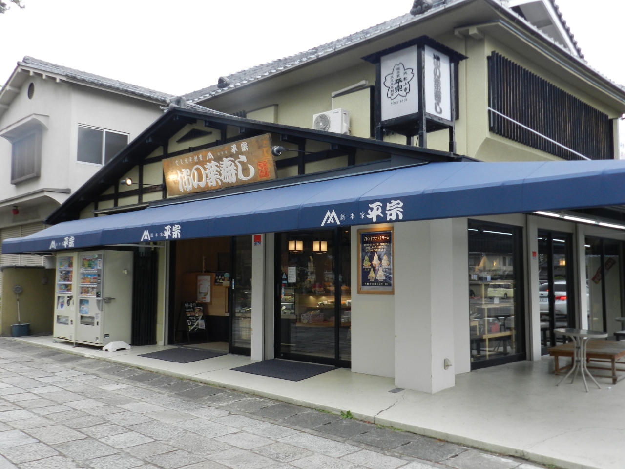 法隆寺iセンターのある駐車場から出て法隆寺に向かう参道直ぐ右手にある柿の葉ずしの老舗名店。店内は広くてゆっくり食事も出来るようになっていますが御土産に奈良の伝統の味の押し寿司定番柿の葉ずしを買いました。伝統の押し寿司は美味しいですよ。
