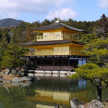 上賀茂神社からバスで金閣寺へ。50分ほどで到着した。参拝門をくぐると池の向こうに金色の金閣が佇んでいた。この池越しの金閣が最大の見どころのようだった。境内は一方通行なので流れるように進む。角度を変えて金閣を見るが、初めに見たものが一番きれいだった。「夕佳亭」を通過。「不動堂」を通過して参拝終了。所要30分ほどだった