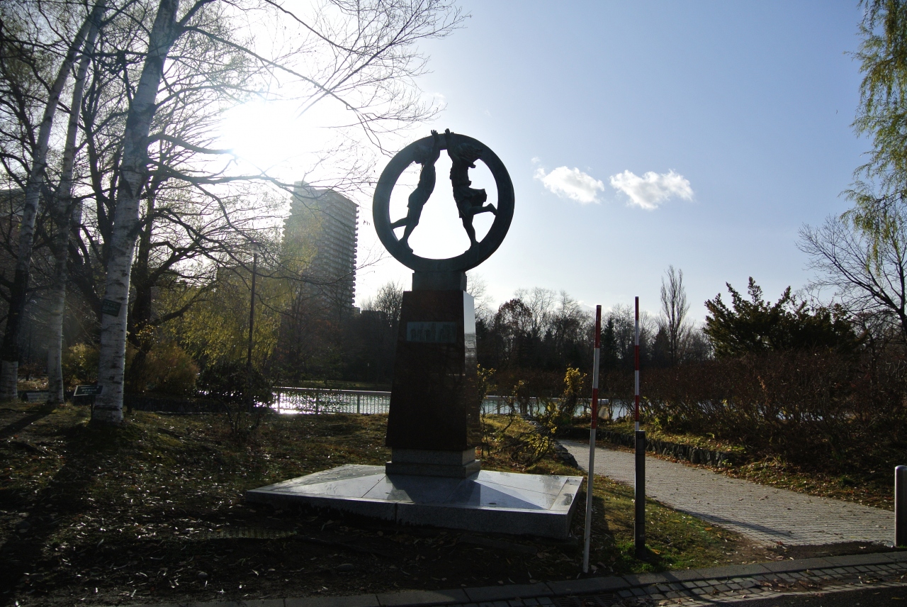 中島公園にある像です。二人の子供の姿がとても躍動的で、まさに「のびゆく子等」という名前がふさわしい像だと思います。逆光で撮ったシルエットもとてもきれい。地下鉄中島公園駅を上がり、児童会館などを通り過ぎた所にあります。