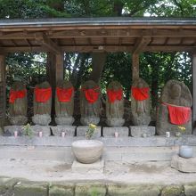 粗末な屋根の下に並んだお地蔵は、かつての杉本城で、南朝方の北畠顕家に攻められここで自害した斯波家長らの供養にと建てられたもののよう。しかし、周囲は荒れた感じだし、そのような意味を知らなければスルーしてしまうと思います。