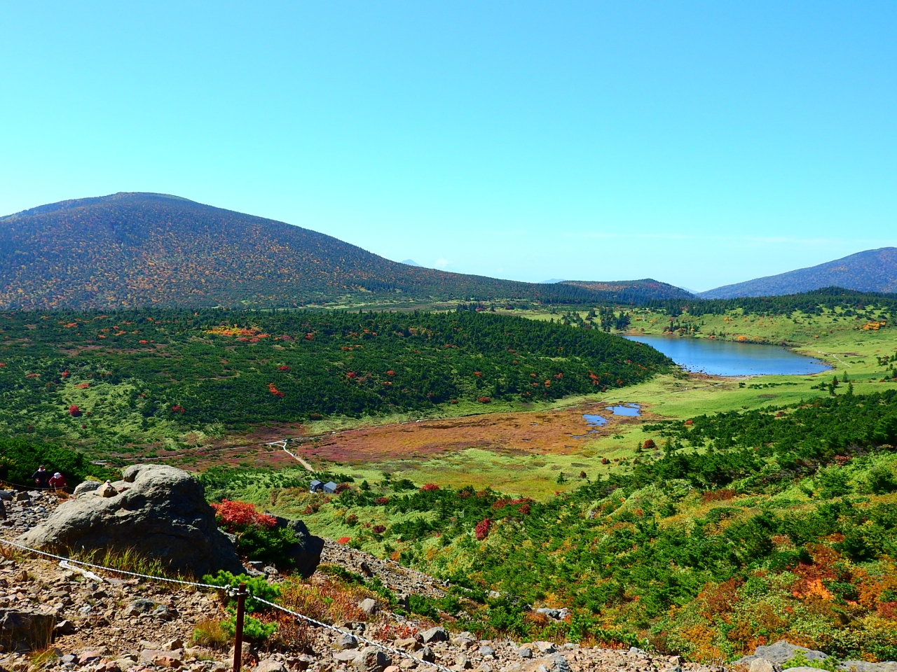 紅葉の季節に訪れました.浄土平から一切経山に昇り,帰りに鎌沼の周りを一周して帰ってきてもそれほど時間はかかりません.また,一切経山に比べると,沼の周りは木道が整備されており,平坦で歩きやすいので,体力に自信がなければ,鎌沼の周りを散策するだけでも十分価値はあると思います.ただ,沼の周囲だと全景が分からないので,一切経山の途中まで登って,全景を写真に納めてから沼の周りを散策するのも良いと思います.