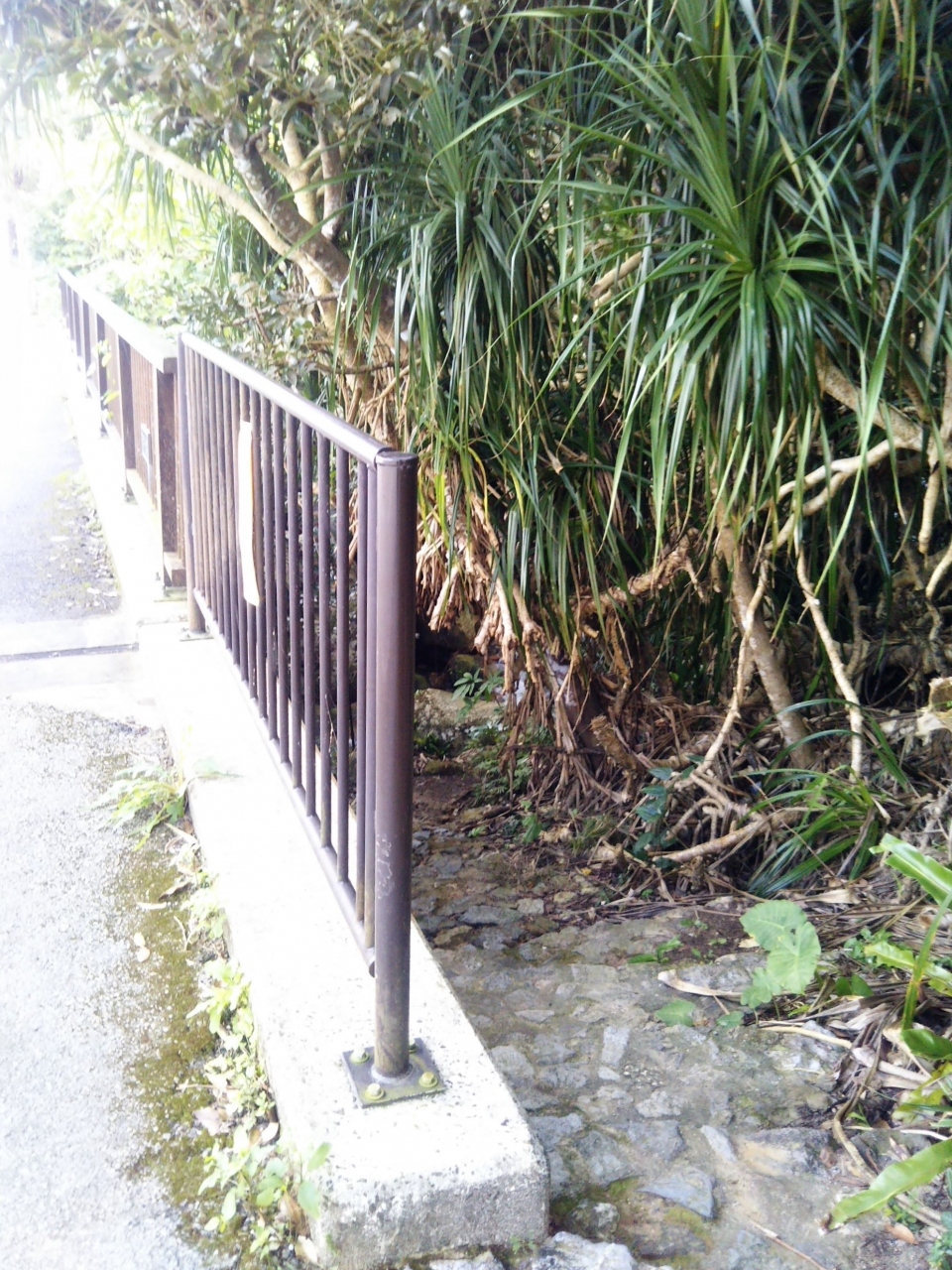 ガイドブックに寒緋桜自生地、荒川の滝の上流とあったので、道沿いの滝へ。4台分の小さな駐車場に停め、道路を左手に行き、柵の切れた辺りにある階段を下りていくとすぐに川、目の前で段差状に。滝ってこれのこと? 木々で鬱蒼としててパワースポット的。上からロープが2本、掴んで滝壺へ、らしいです。