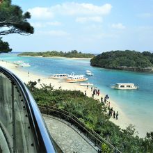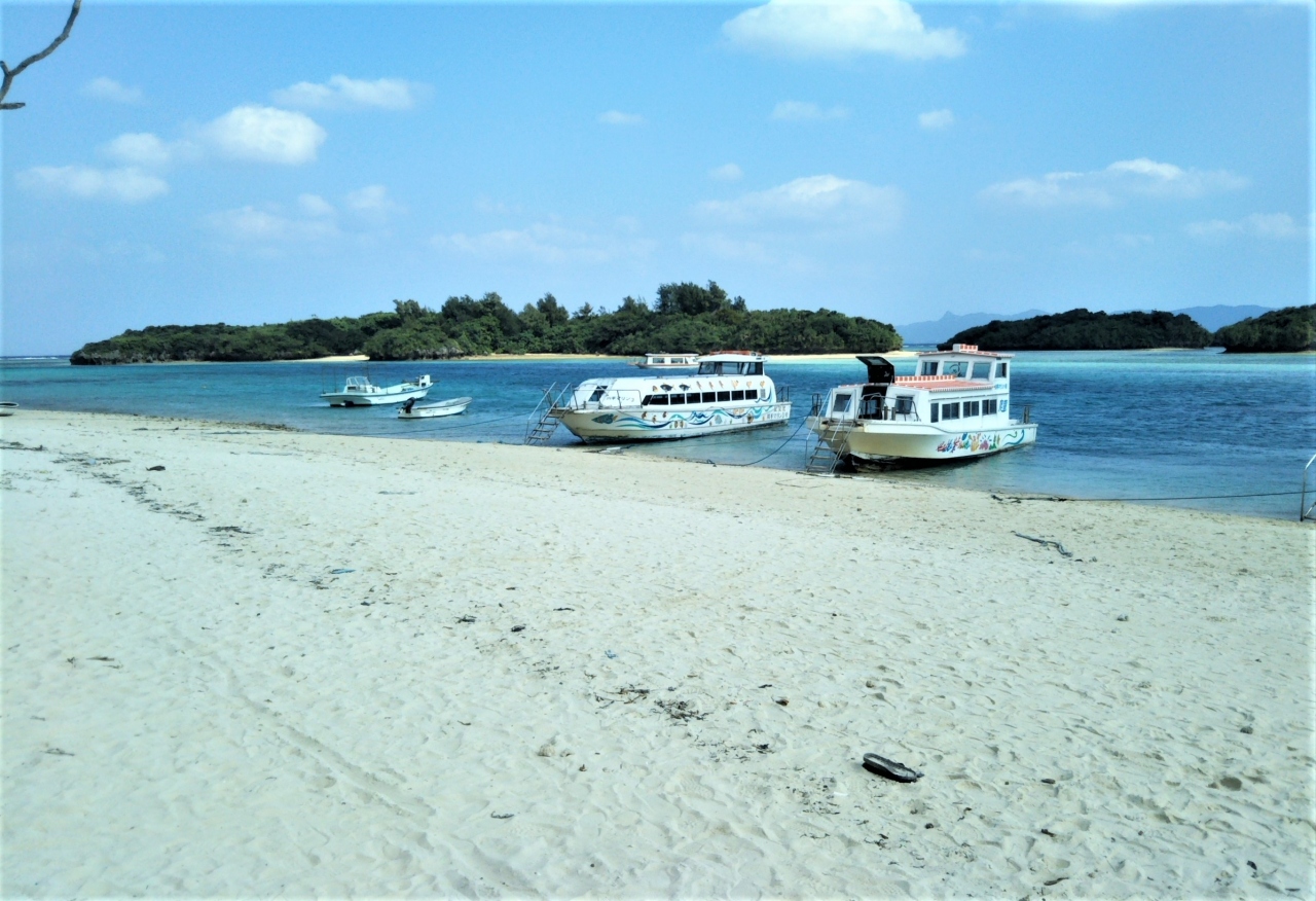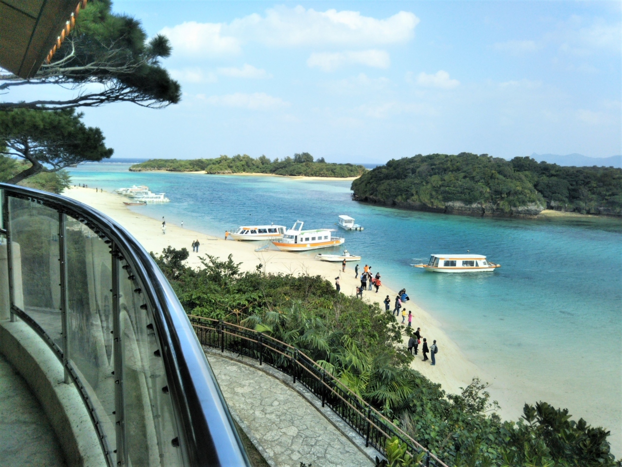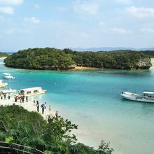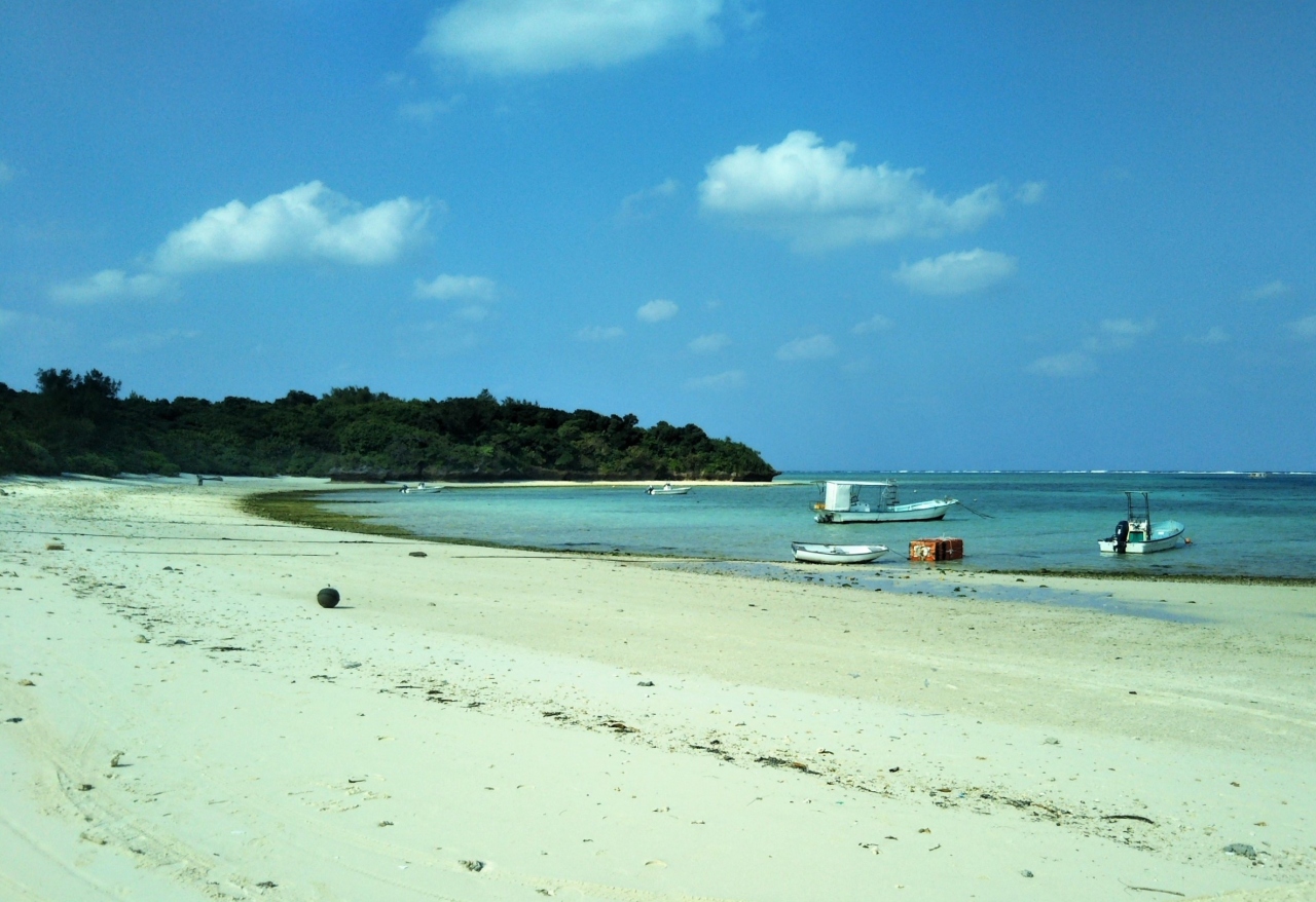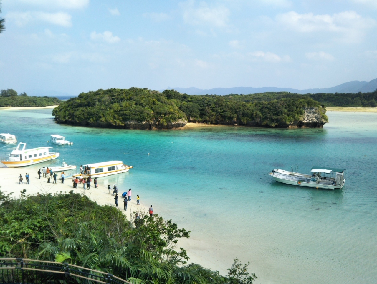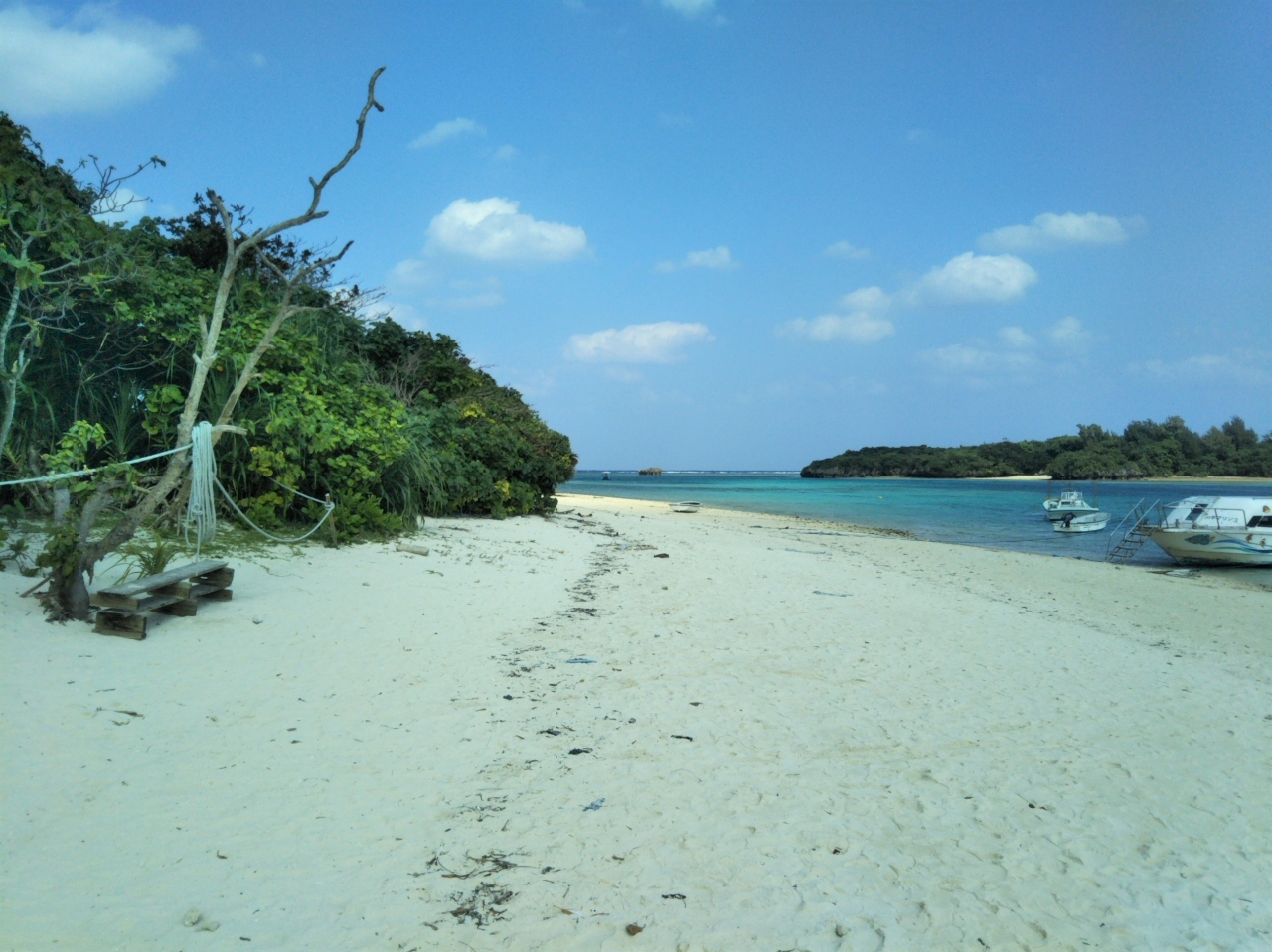 石垣島で一番有名なスポット、川平湾。観光パンフでよく見かけますが、実際にその真っ白な砂浜にエメラルドグリーンのきれいな海を目にすると、少し感動してしまいます。湾内では観光のグラスボートやジェットスキー(そぐわない)、周辺には展望台のある公園。一大スポットらしく飲食店・土産物店も揃っています。