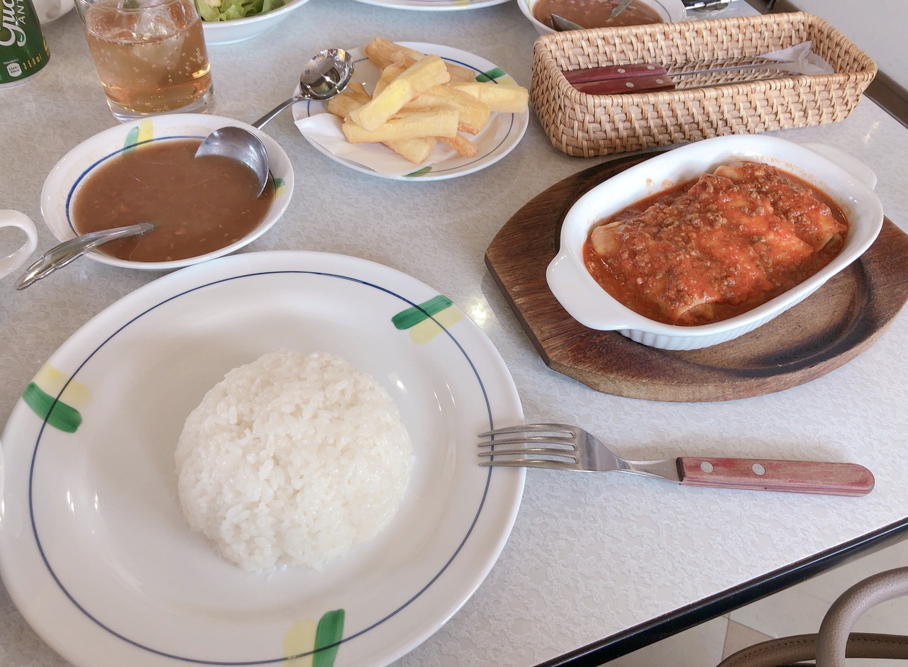 メインは「パンケッカ」というブラジル移民料理。挽肉をクレープで巻いて、さらにミートソースをかけた料理でかなりボリュームあり。セットライスまで手が出ませんでした。