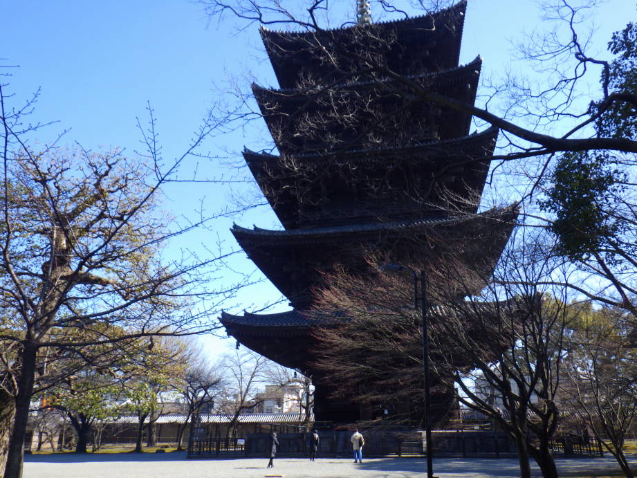 国宝の「金堂」には重要文化財の「薬師三尊」と「十二神将」が安置されていた。続いて「講堂」へ。重要文化財の「講堂」には21体の仏像が「立体曼荼羅」となり安置されていて、どちらも写真撮影不可であるが見ごたえのあるものであった。日本一の高さの五重塔まで見て、京都駅に戻った。