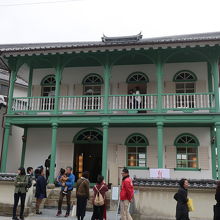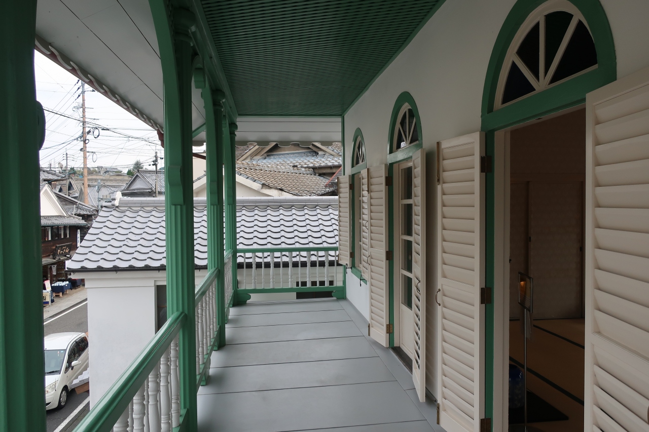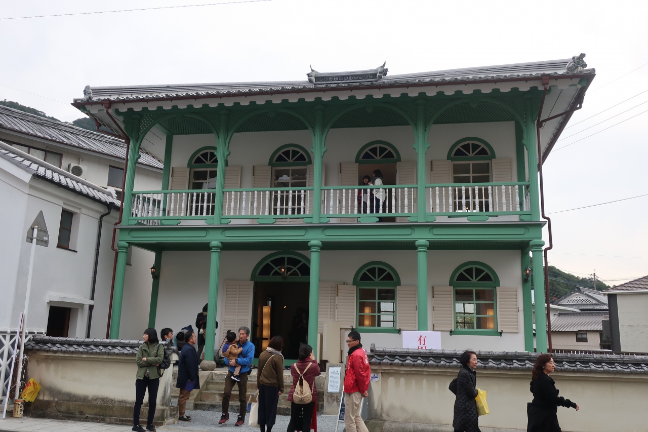 深川製磁の本店の対面にある有田の町で一際目立つ異人館が田代家洋館です。明治9年に田代助作が有田焼を買い付けに来る外国人の接待、宿泊施設として建てた洋館です。秋の陶器祭りでは内部も無料で公開されており、バルコニーのある外観、ステンドグラスや有田焼の下にぶら下がるシャンデリアなどの内装など贅沢な造りが見事です。