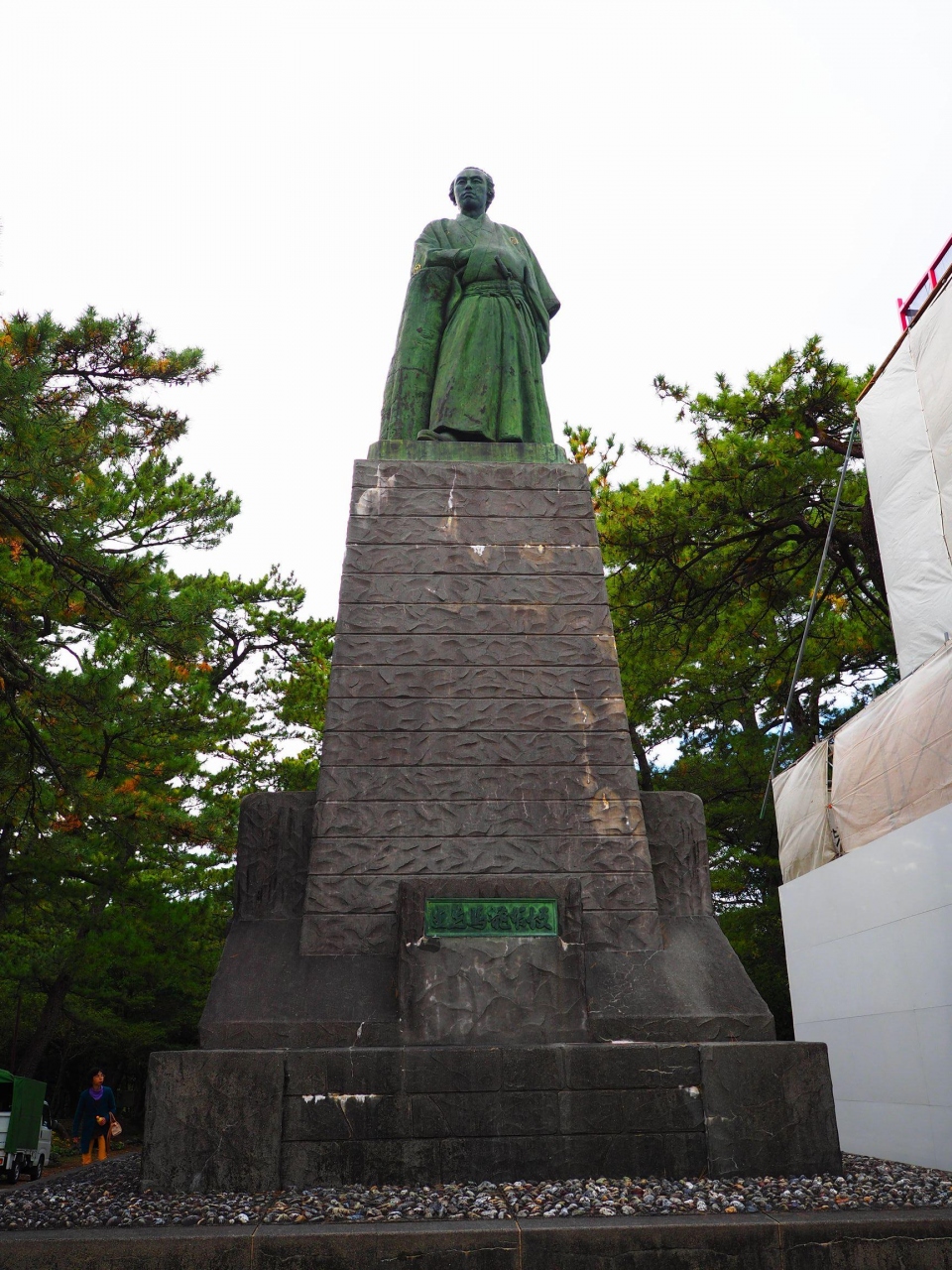 高い台座のその上に建ち、下から見上げると逆光になってしまい顔の表情も良く分かりません。
