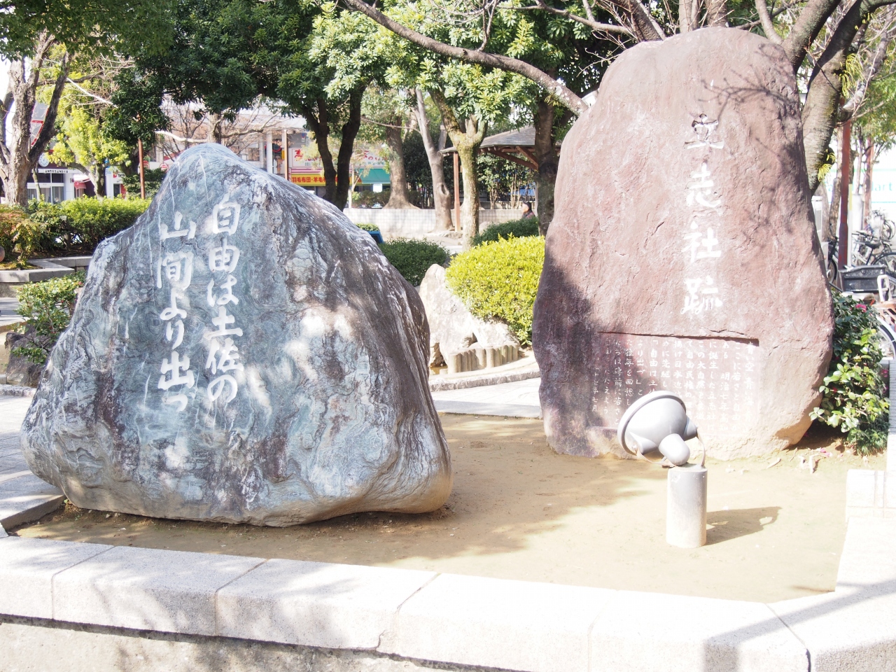 高知市街地の中心である高知大丸からもすぐの中央公園内に立志社の石碑がありました。立志社とは自由民権運動の中心となった板垣退助などが設立した政治結社です。石碑の文章で「自由は土佐の山間より出」の文は明治の時代の政治への熱意を感じるような石碑です。