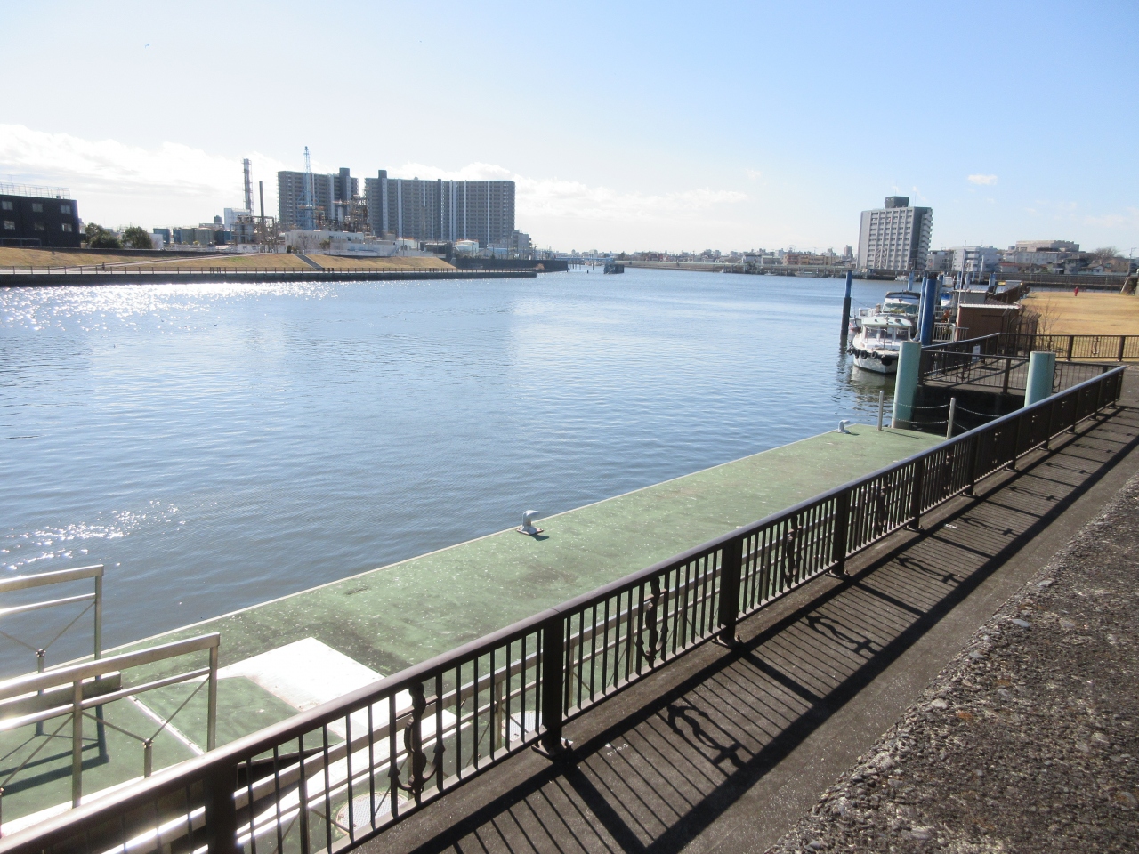 東京都と千葉県の境を流れる9㎞程の河川です。新中川との合流地点付近から500mほど川の横に造られた歩道を歩いてみました。川幅が広く、プレジャーボートや屋形船の係留地などもあり、川面では鳥たちが翼を休めていました。かつては大きな浸水被害を出した川ですが、現在は流れも穏やかで広々としていて、眺めているだけで開放的な気持ちになる川です。