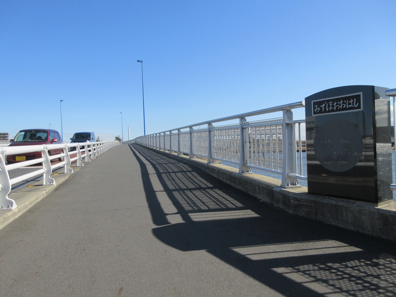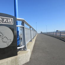 2011年に新中川に架け替えられた橋です。片側1車線、広い歩道が両側にある見晴らしのいい橋です。青い街灯と黒い磨かれた親柱に金魚や釣り人のかわいいイラストが彫られているのが特徴です。江戸川区レンタサイクルを利用して船堀駅から瑞江駅まで回っていた時に通りました。イラストが気に入りました。
