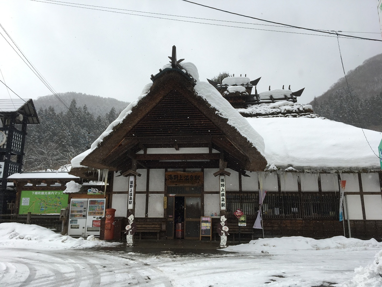 鬼怒川温泉から会津若松まで乗り通すなら、途中下車がオススメです。会津若松行の切符で、途中下車もできました。オススメは、湯野上温泉駅で、茅葺き駅舎で雰囲気もあり、待合室には暖炉もありました。駅舎横には足湯もありましたが、駅からすぐのところには、日帰り利用できる温泉旅館もありました。