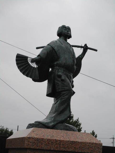 出雲阿国は、歌舞伎の始祖です。徳川幕府は、「女かぶき」は風紀を乱すものとして禁止しました。いいものはいいとされる時代に生まれなかった阿国は可哀そうですね。彼女は晩年大社に戻り余生を送ったそうです。だからこれは悲しい舞の像ですね。