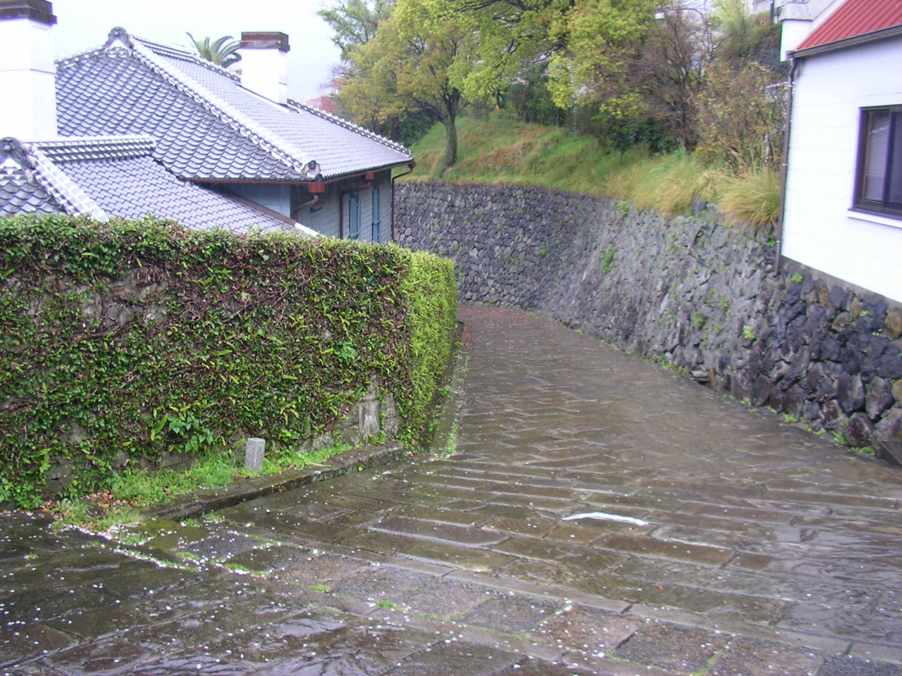 歩いて坂をのぼっていくと、雨の日でより風情がありました。