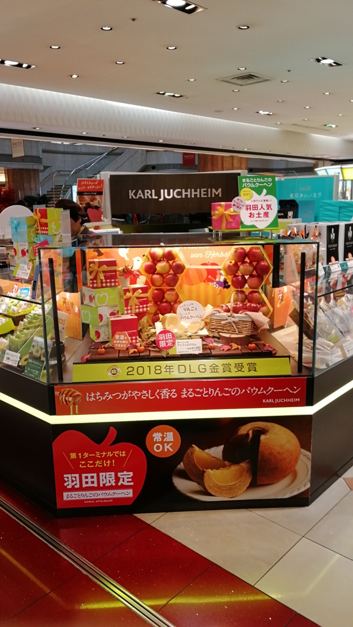 有名なバームクーヘンのお店です。羽田空港限定の商品があるので、それはここでしか買えません。羽田空港の第一ターミナルの食べ物系のお土産屋さんが集まる一角にあります。保安ゲートからもすぐ近くなので、搭乗前の買い物でも便利ですが、飛行機に乗らなくても利用できるエリアなので帰りでも買えていいです。