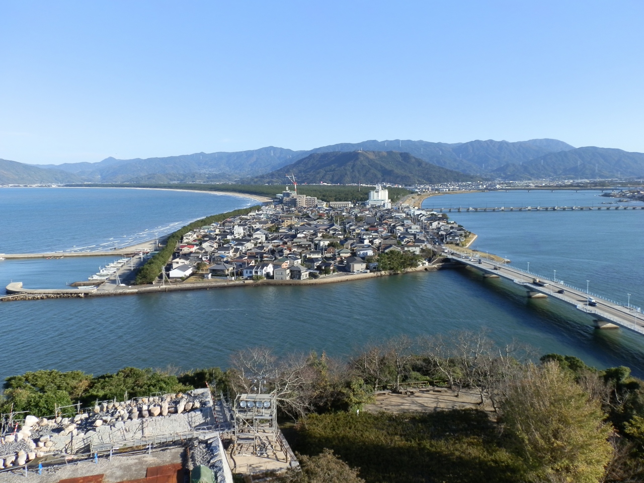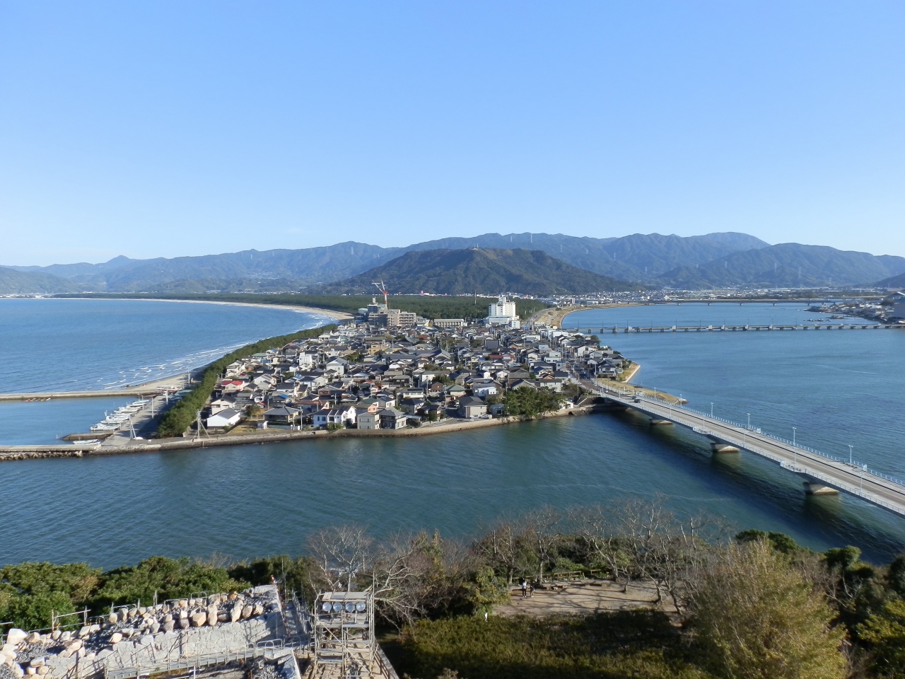 舞鶴橋を唐津城天守閣から眺望するとダイナミックです