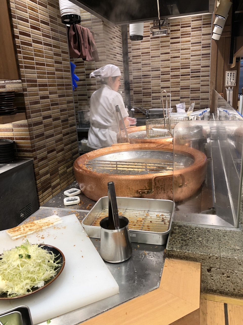 肉に衣をつける人、揚げる人、ご飯と味噌汁を準備する人、精算する人、で業務分担していました。