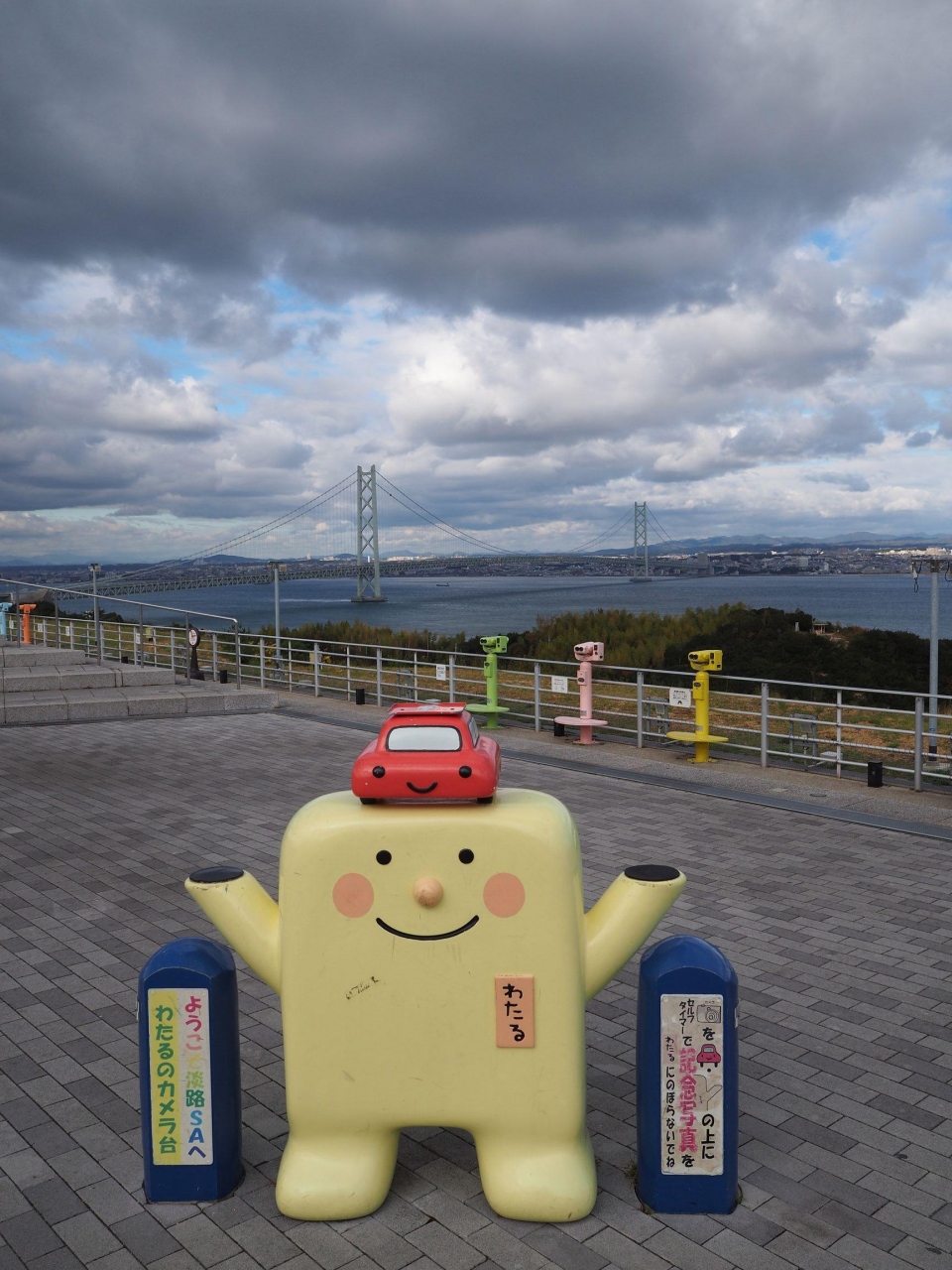 淡路島北端、明石海峡大橋の袂のSA。明石海峡大橋、対岸の大阪・神戸まで見渡せる眺望が抜群のSAです。駐車場も広く余裕を持って休憩する事が出来ます。