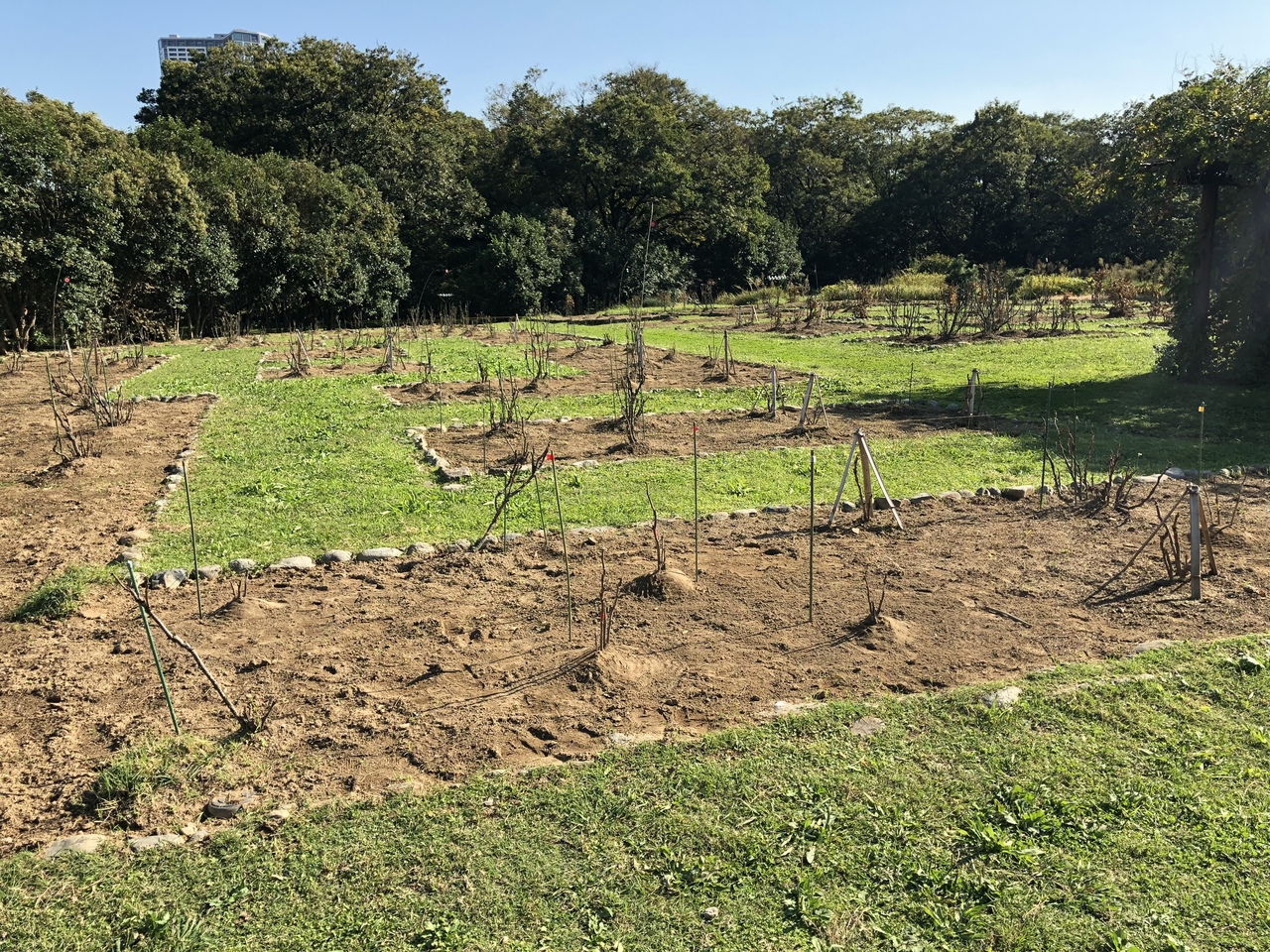 汐留にある浜離宮恩賜庭園の北側、かつて荷下ろし場や倉庫として使われていた平地は、今はさまざまな植物が植えられた庭園として整備されています。