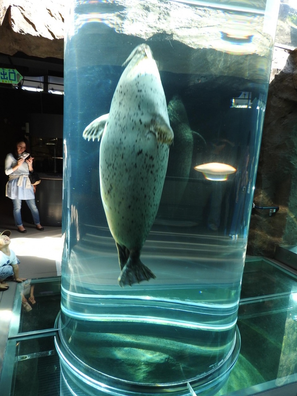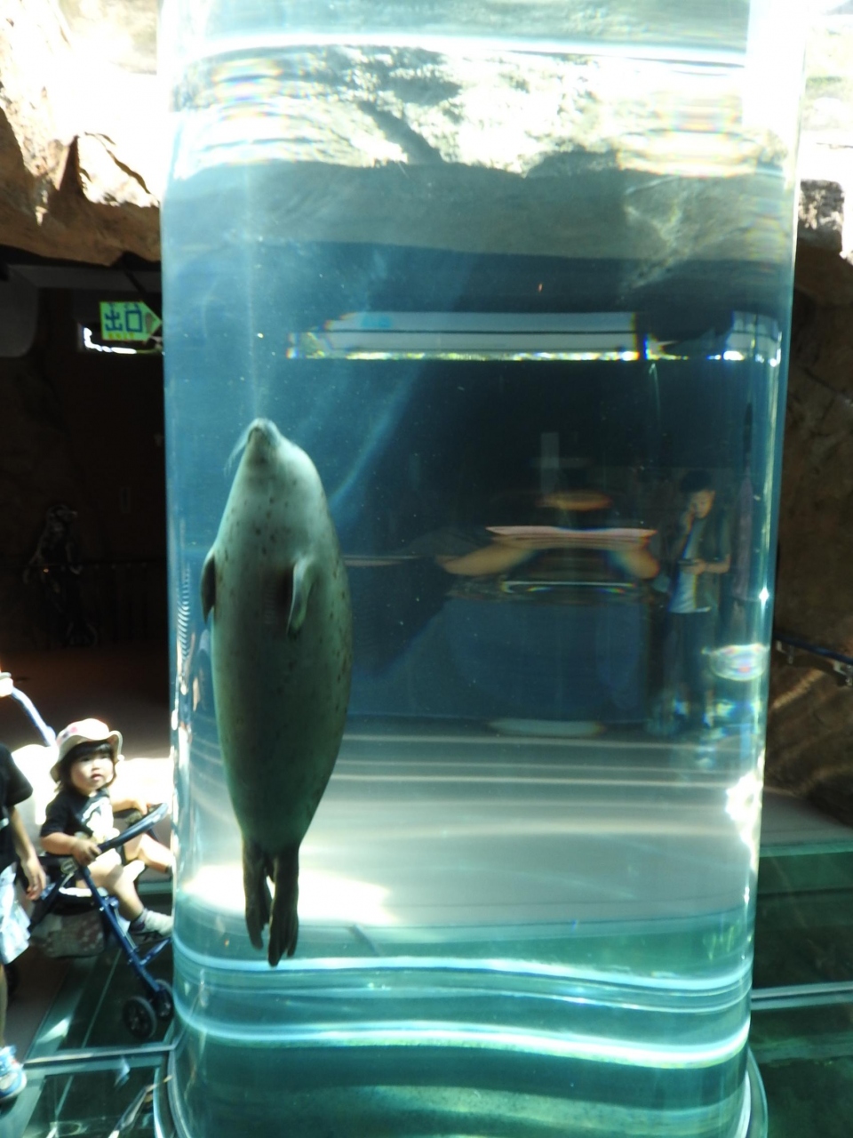 旭山動物園の中でも有名な場所の一つで,アザラシが透明なアクリルチューブを通り抜けるのを待って,沢山の方がカメラを抱えていました.確かに今までになかった展示方式で,なかなか面白い仕掛けだなと思いました.チョットアクリルが曇り始めてきたので,正直に言えば,もう少し透明感が欲しかったところです.また,人気の場所なので,写真撮影も難しいことがあります.