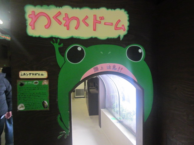両生類館としては、数年前の建物と比較すると、カエルさんテイストが大きくなっていて、なかなか可愛いケロ~、というデザインも多くみられるので、その点に関しては大満足でした。