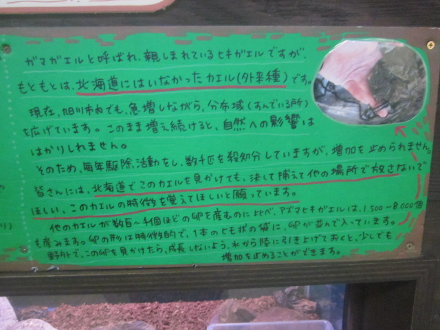 このアズマヒキガエルさんというのが、実は最近の旭川では、移入に関して問題となっていて、駆除の対象にもなってしまっています。カエルマニアとしては悲しい限りなのですが、こうした問題も直視しながら、北海道の既存の在来2種と移入5種との関係も考えていかなければならないですね。