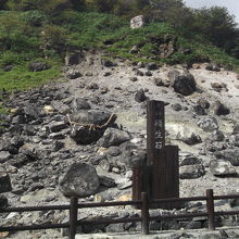那須高原の賽の河原にある大きな岩です。駐車場に車を置いて10分ほど散策路を進んでいくとその一番奥にあります。名前を聞いただけで恐ろしい感じがしてきますが、なるほどその廻りは特有の硫黄のにおいが立ち込めていて、妙に納得してしまいました。
