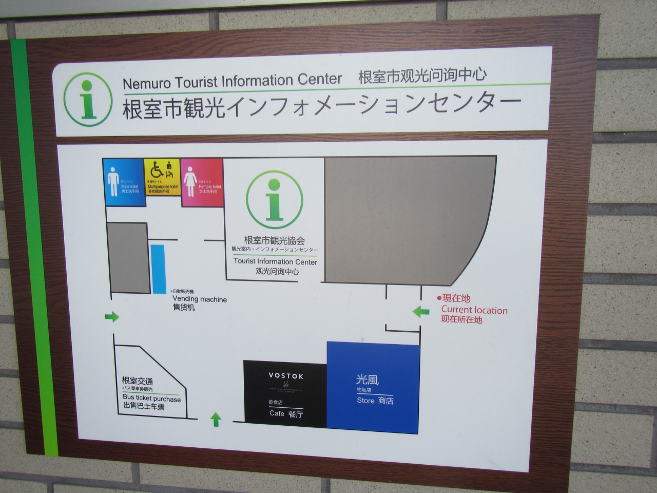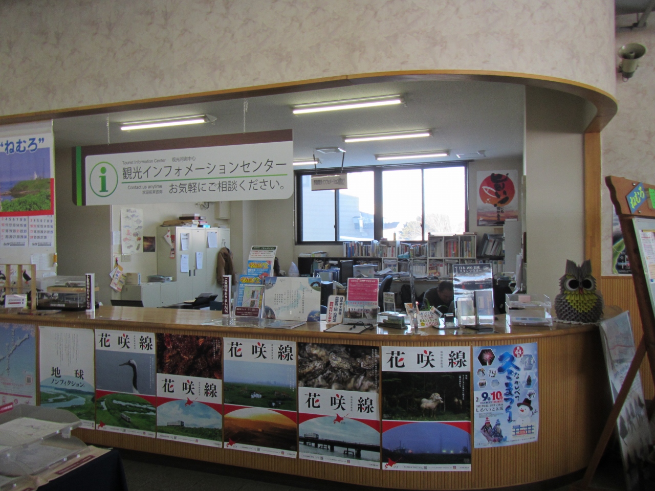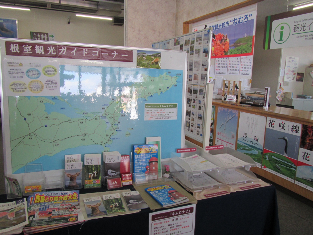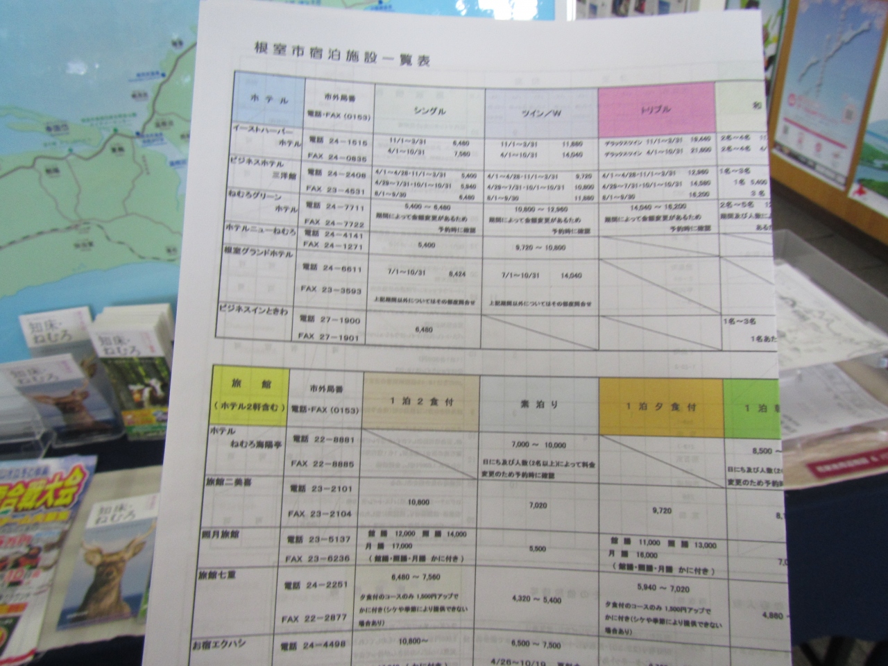 有人の窓口があって、観光案内をしているほか、役に立つ観光パンフレット、地図や根室市内の宿泊施設一覧(お値段、連絡先等記載)なども配付していました。