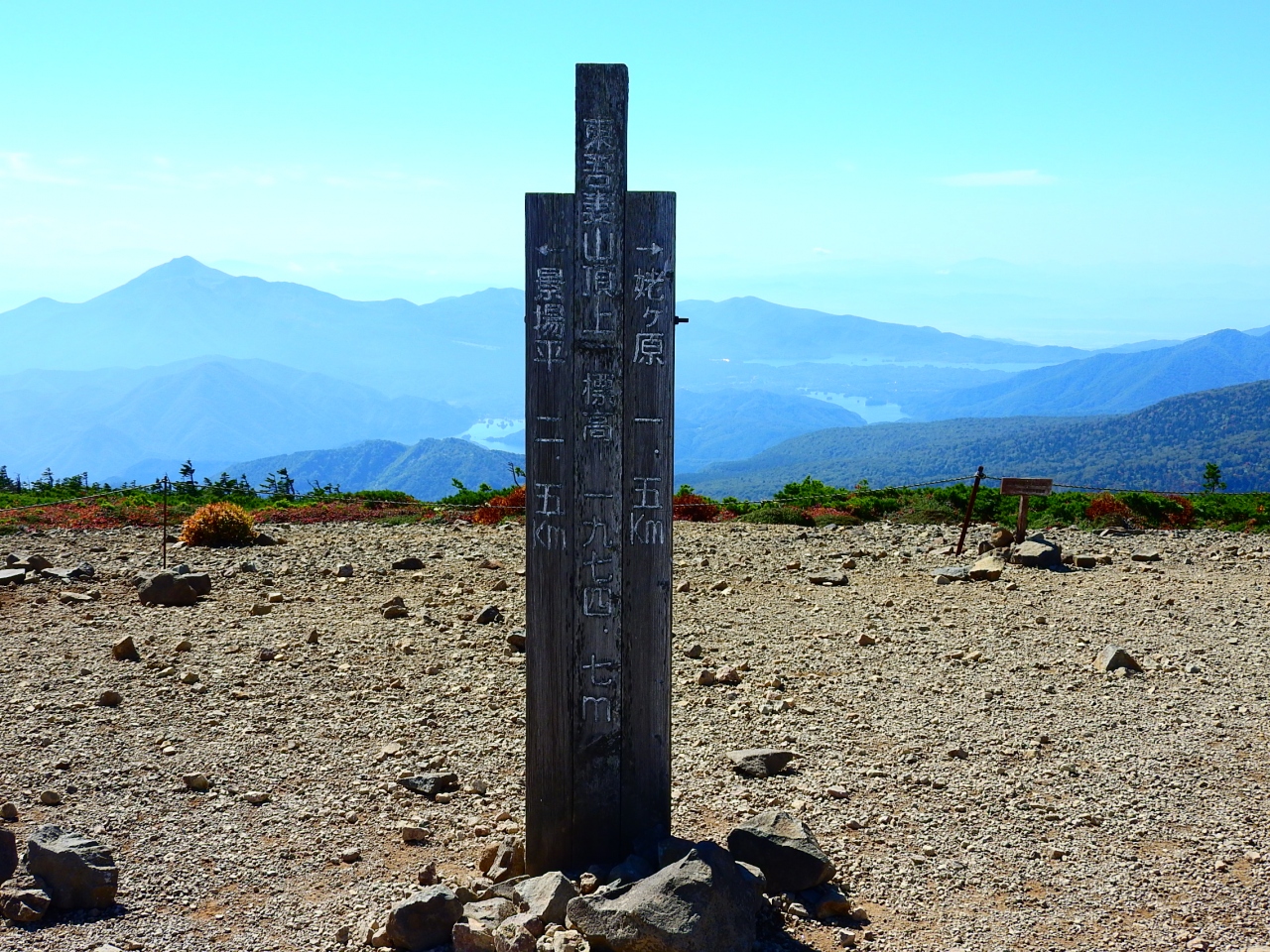 頂上直下から森林限界を超え,頂上に樹木はありませんので,景色は非常に素晴らしく,檜原湖や磐梯山を望むことが出来ました.
