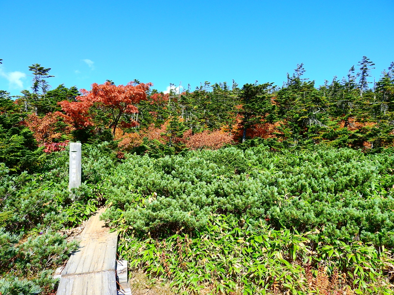 一切経山と合わせて登ることができますが,頂上付近まで森林限界が現れず,登山道も悪いです