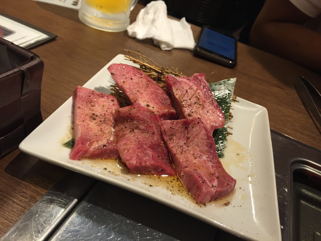民博を見学して、夜ご飯で食べに来ました。普通の雑居ビルの2回にあるんですが、内装が結構立派。和風な感じで、一つ一つのテーブルの位置を広めにとっていて、落ち着いた空間になっていた。良い感じの内装でした。お肉も普通に美味しくて良かった。値段はやや高めかな?
