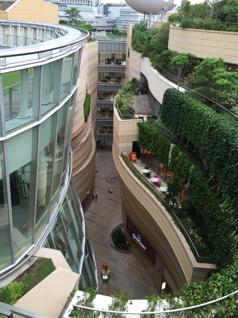 なんばパークスに初めて来ました。入っているお店はどこにでもよくある奴だけど、建物の形が面白かったです。ビル自体が湾曲していて、自然を多く取り入れている感じ。パークスガーデンに寄りましたが、緑が多いおしゃれな庭園で、長居したくなります。ガーデンからの眺めも良かったです。