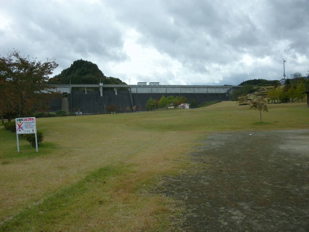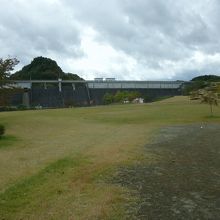 ダム直下、全域に芝生が広がる公園