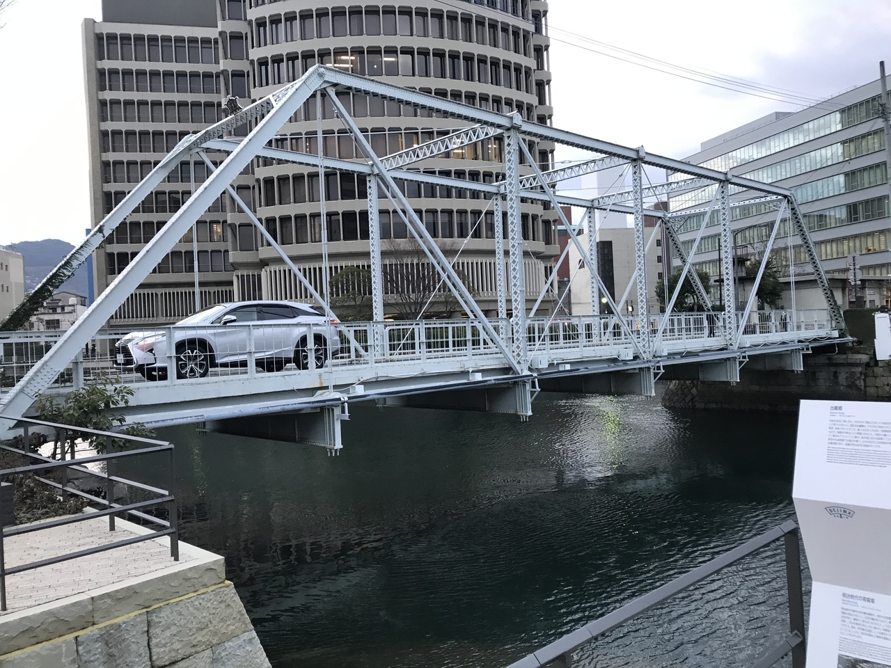 1890年に中島川の河口に架橋、1910年に現在の場所に移設されており、日本で最古の現役鉄製道路橋です。129年目…