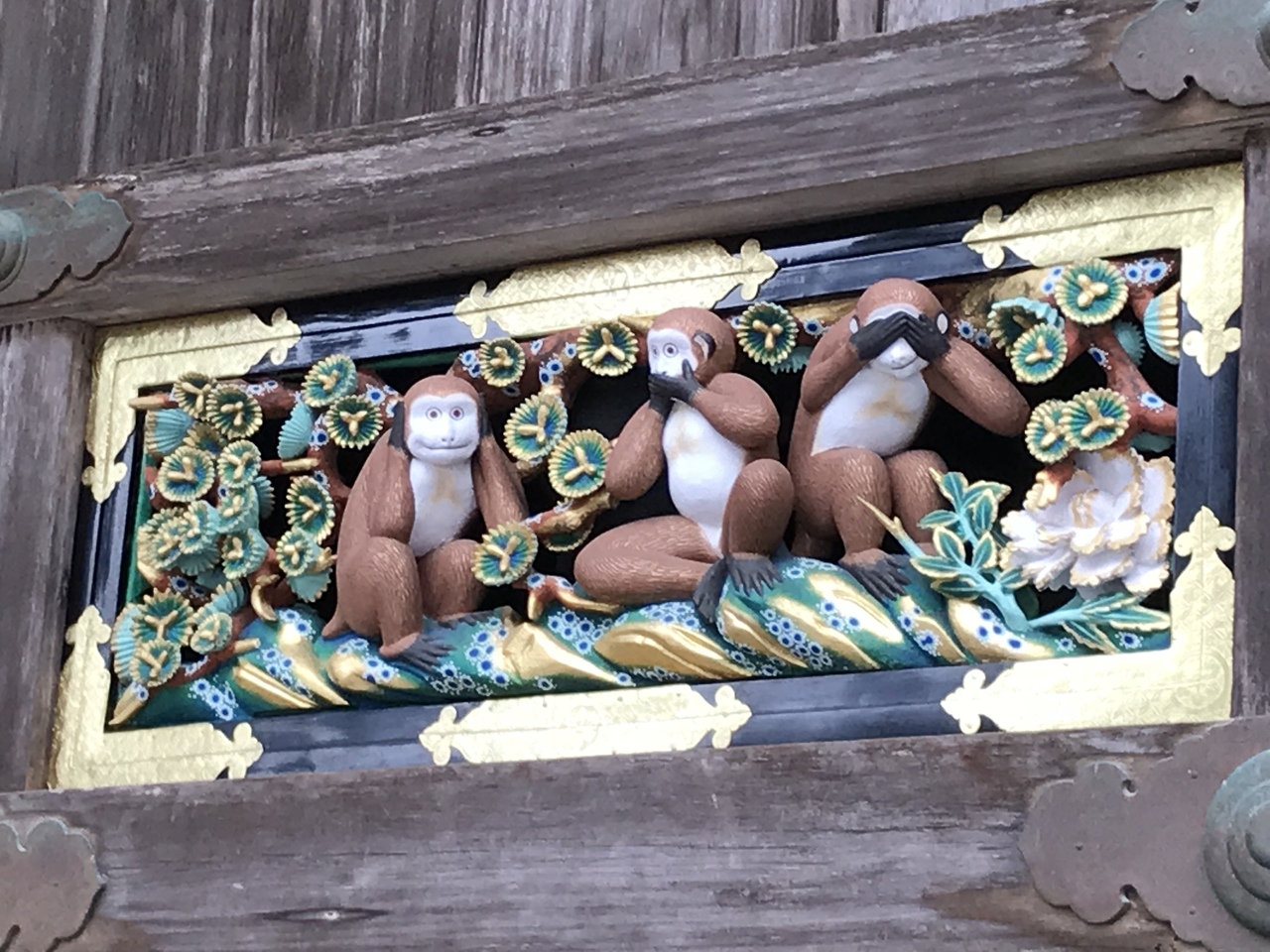 欄間に有名な「見ざる・言わざる・聞かざる」が彫られている。