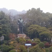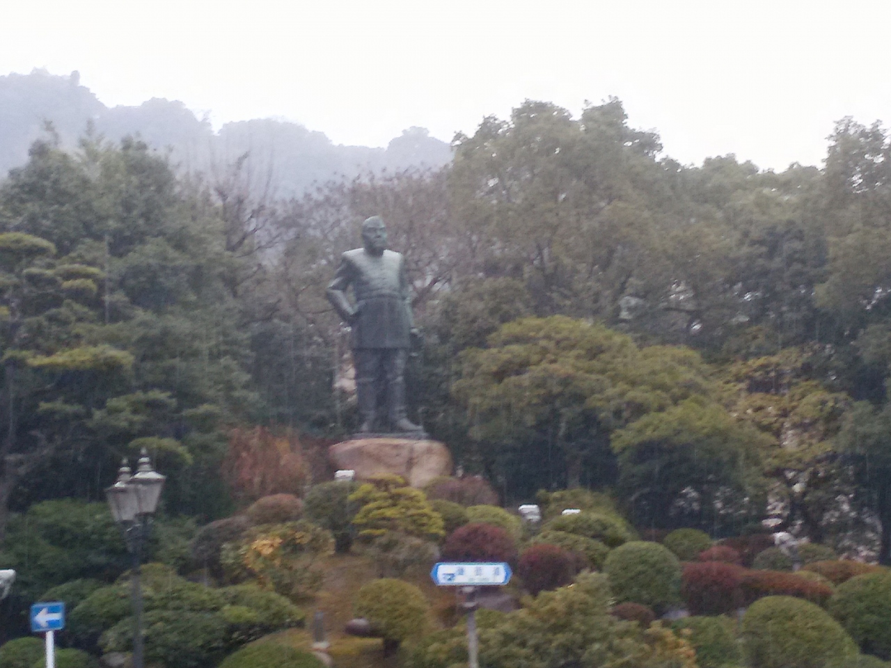 城山へ行く途中に、山を背にして、大きな”西郷隆盛”の立像がでーんと建っています。去年の大河ドラマがせこどんでしたので、このエリアは観光客が多く、見物に来ていました。上野の西郷さんは浴衣姿ですが、ここでは軍服姿です。