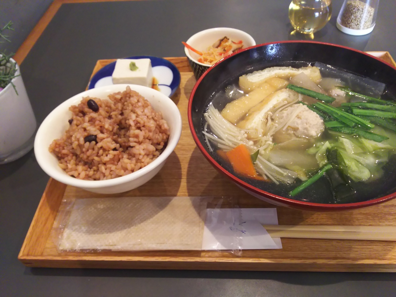 店内にはマトリョーショカ他かわいいロシア雑貨がちらほら。ロシア推しか?(ボルシチ定食なんてのもあったし)と思いつつ「ボリクの汁定食」をチョイス。当日は「塩ちゃんこ」でした。紅白のなますや、雑穀米のごはんに野菜たっぷりのちゃんこ。なぜかお酢がセットで。なますが漬物的アクセントで、おいしかったー。