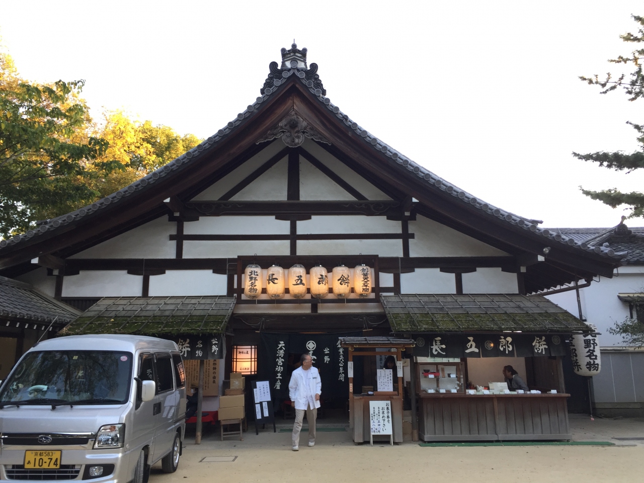 北野天満宮にお参りして、境内に長五郎餅のお店があったので思わず立ち寄りました。お饅頭セットを注文したら、お饅頭が2つもついてきて大満足です。味も小豆の香りがしっかりしていて美味しかった。店内は大衆茶屋のような大きな椅子があって、風情があります。