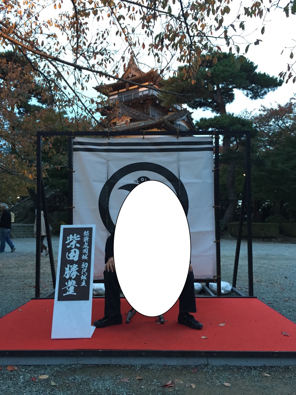 11月初めに訪問。紅葉にはまだ早かったけど、ライトアップされていたので行ってみました。観光客が数人ほどいました。丸岡城の麓には柴田勝豊と書かれた写真スポットがあり。観光客用のスポットが臨時で作られている感じ。丸岡城のライトアップはほどほどに照らされていました。夜間開館はしてませんでした。