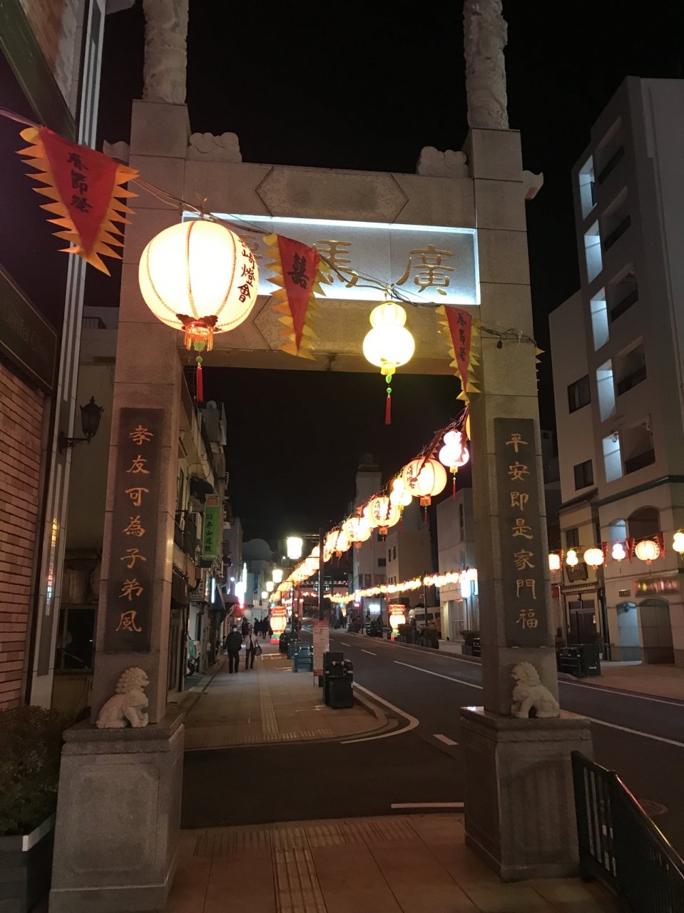 バスだと長崎バス長崎新地ターミナル、路面電車だと築町電停が最寄りの、江戸時代に清の人々が住んだ唐人屋敷跡に誘う門(その1)。