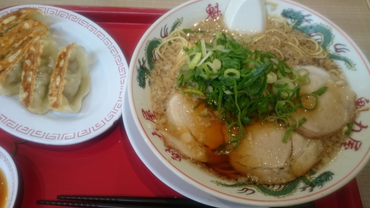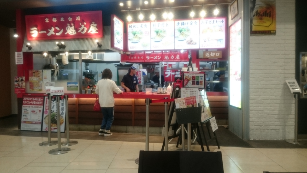 京都でも食べたことのある、京ラーメンの魁力屋。京都で食べたときよりも、スープにコクがなかったような気がします。あと、京都ではノーマルラーメンでも九条ネギたっぷりですが、ここのは少なかった。関東人向けにしているのかな? ネギをお好みトッピングできるので、容器に入っていた分をめいいっぱい入れましたが。