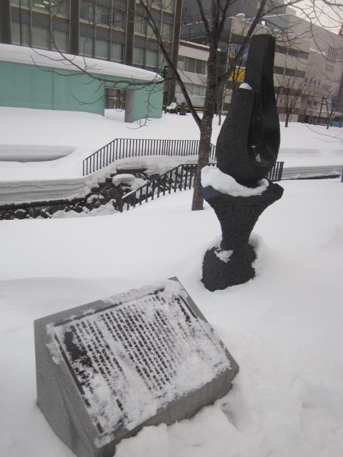札幌建設の地碑としては、碑の横に解説板も付されていてこれが非常に参考になりますが、冬季は降雪状況によっては雪に埋もれて読めなくなっていることもありますので、厚手の防水手袋などを用意されておくと、それを払ったりするのに重宝するかなと思います。