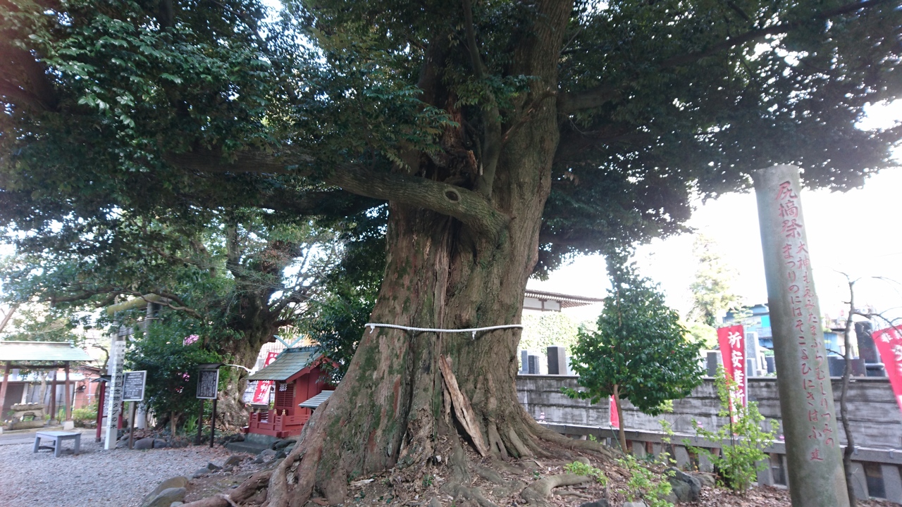境内には伊東市天然記念物で枝で抱き寄せるが如く2本の木が寄り添う大樹や、胎児の様なコブの在る樹木、地元高校生が作成した頼朝伝説の絵巻物風看板が在ります。